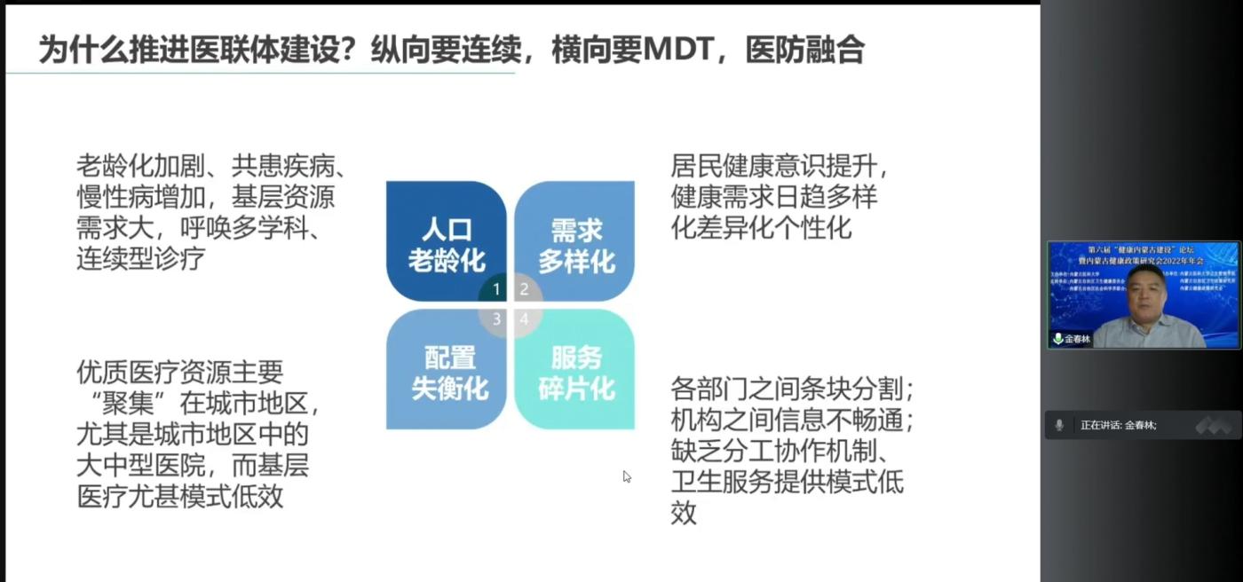 2022年12月10日,第六届“健康内蒙古建设”论坛暨内蒙古健康政策研究会2022年年会在内蒙古医科大学新华校区顺利召开。本届论坛由内蒙古医科大学主办,内蒙古医科大学卫生管理学院、内蒙古自治区卫生政策研究所、内蒙古健康政策研究会共同承办。论坛的主题是“整合型医疗卫生服务体系下公立医院高质量发展”。